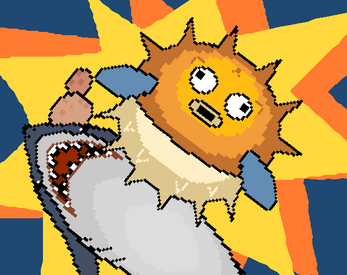 Use your spikes to knock down the sharks!